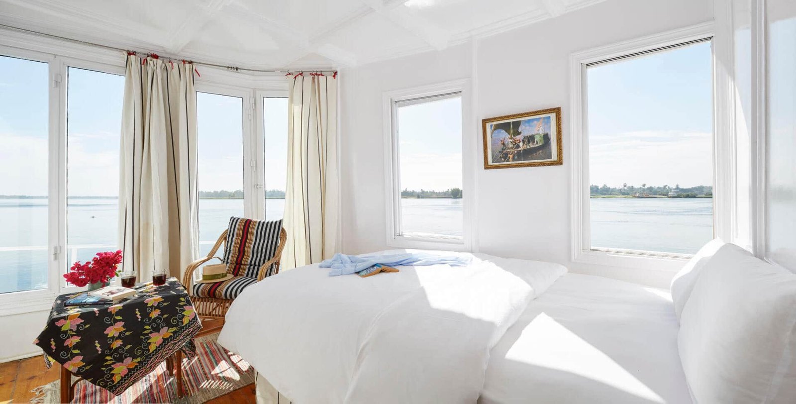 • Spacious and Elegant Cabins: The cabins on the Assouan Dahabiya are beautifully designed with modern facilities, offering breathtaking views of the Nile River.