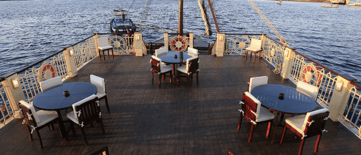 After lunch, which will be served on the boat, we'll keep sailing toward the Silsela Hormoheb Temple until we get there. Dinner will be served on the Temple grounds, on an island, or on the top deck of the boat, where guests can enjoy the peaceful atmosphere while listening to music that fits the setting.