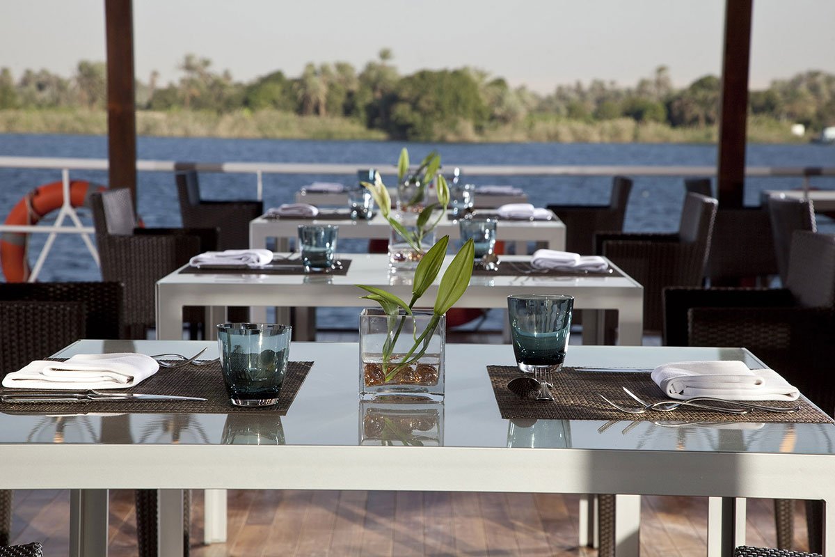 Dining aboard the Sanctuary Nile Adventurer is an unforgettable experience. The cruise’s restaurant offers a variety of gourmet meals, blending traditional Egyptian flavors with international cuisine. Enjoy breakfast, lunch, and dinner in an elegant setting, with exceptional views of the Nile River. The chefs take pride in using only the freshest ingredients to create mouthwatering dishes that will delight your taste buds.