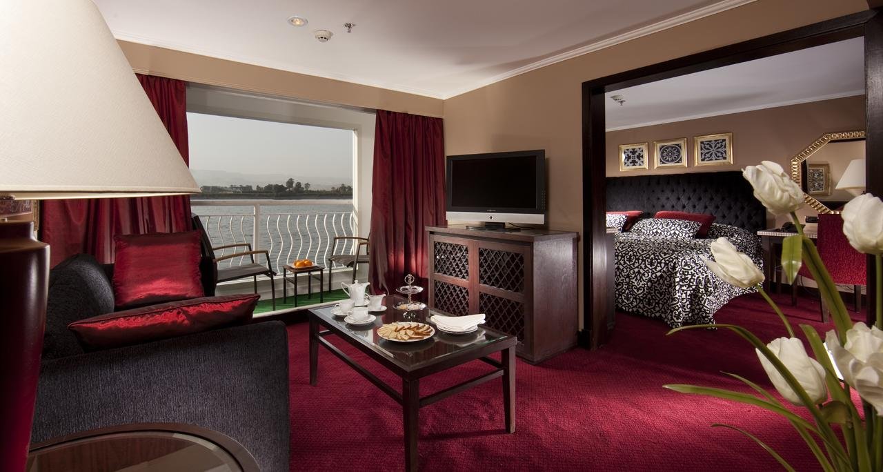 The Deluxe Suites offer the ultimate luxury experience with additional space, private balconies, and breathtaking views of the Nile River. Perfect for those looking for extra comfort and privacy while cruising through Egypt’s historic landmarks.